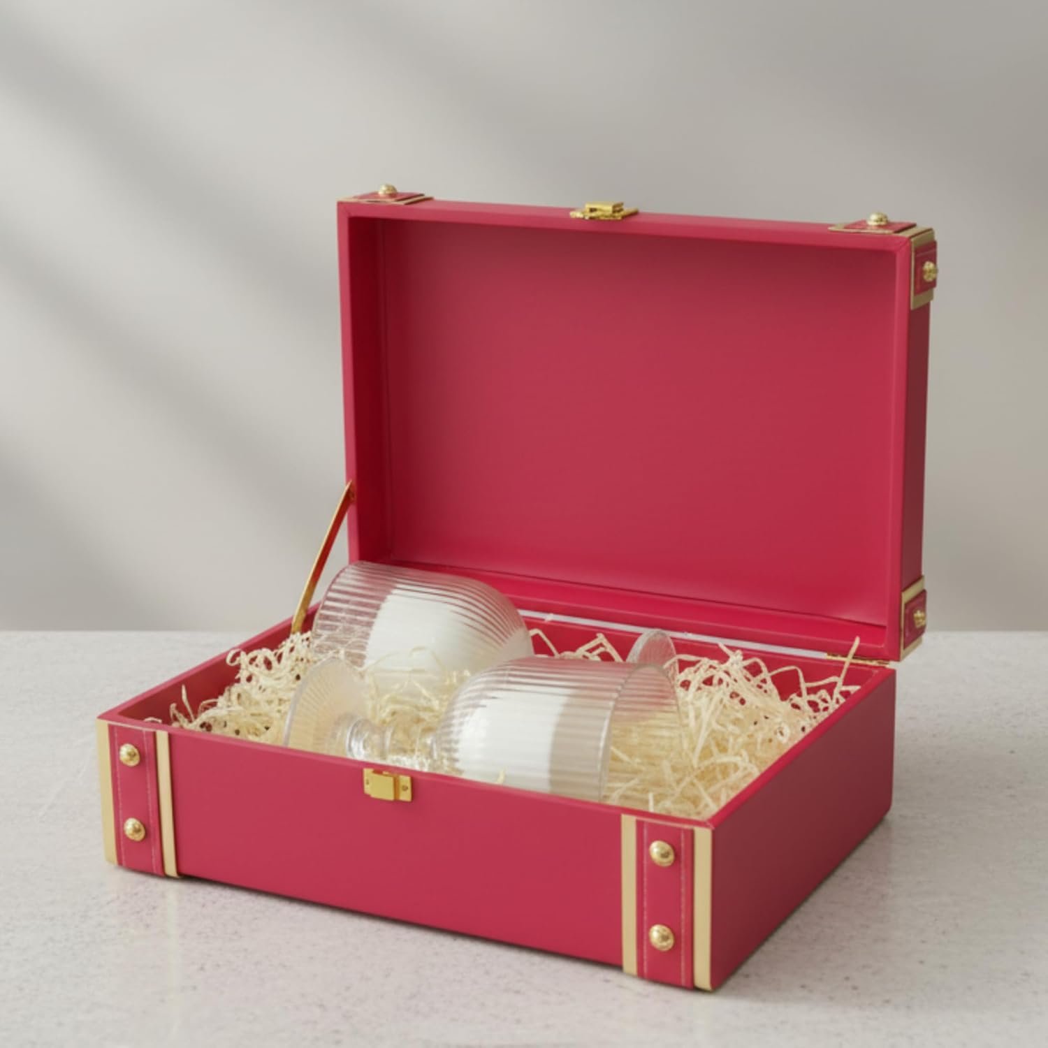 Elevate your festive moments with this Premium Glass Jar Candle Set of 2, beautifully presented in a luxurious magenta trunk-style gift box with elegant gold accents. Designed to impress at first glance, this candle set blends refined craftsmanship, long-lasting performance, and timeless festive charm—making it an exceptional choice for décor and gifting.