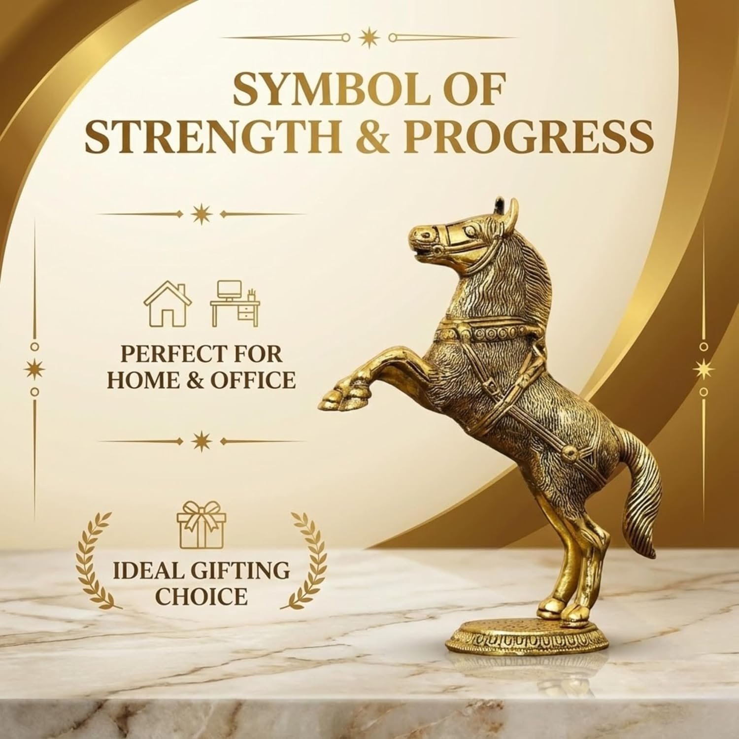 Looking for a thoughtful and sophisticated gifting option? The DailyAlley Golden Jumping Horse Showpiece makes for an ideal choice for birthdays, anniversaries, housewarming ceremonies, festive celebrations, or corporate gifting. Its universal aesthetic appeal and symbolic meaning of triumph and success ensure it becomes a cherished keepsake for any recipient. With its durable build quality and striking design, this décor item combines both form and function effortlessly.